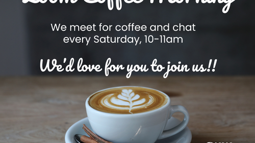 Join us every Saturday from 10am on Zoom for coffee and chat.